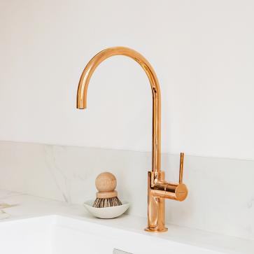 Laiton brossé, chrome, noir mat, nickel brossé ou encore or rose – nos mitigeurs en laiton massif s’adaptent à toutes les cuisines.