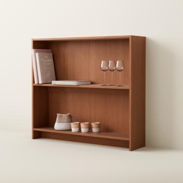 Meuble ouvert à poser au sol, sur le côté d’un ilot de cuisine. Pieds intégrés.