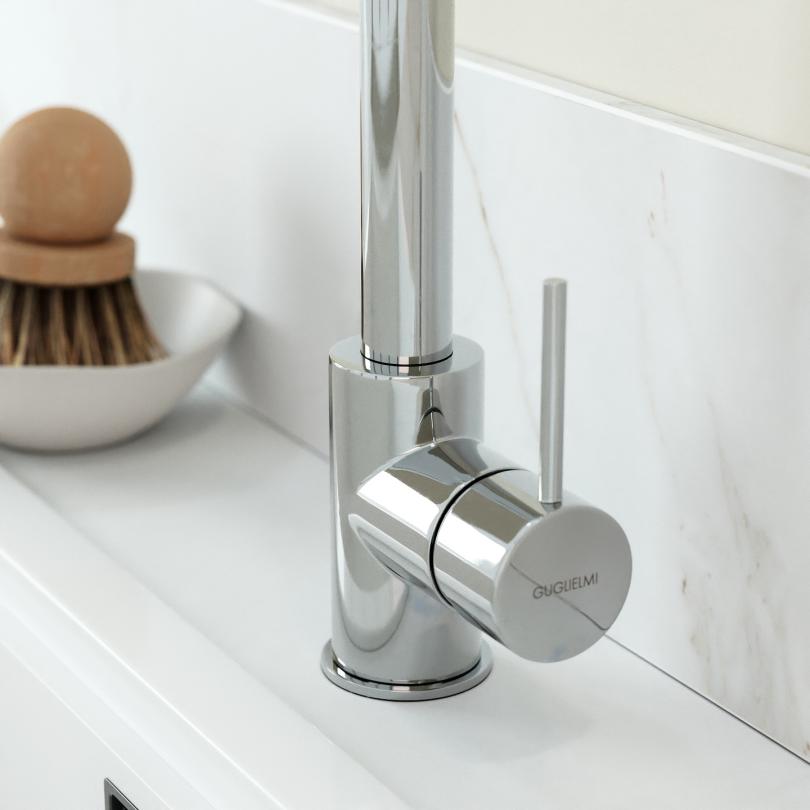 Mitigeur en laiton massif avec douchette extractible, finition chrome.