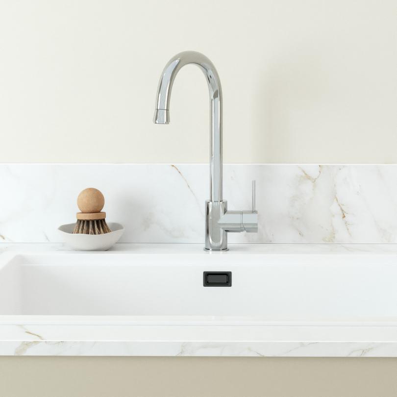 Kit d'installation fourni : flexibles de raccordement 3/8"", fixation avec système rapide. Convient à tous types de plan de travail, de 40mm d'épaisseur maximum.