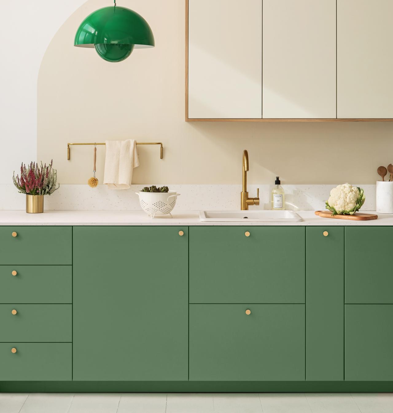 Sauvage, Stone, Sombre Forest, Amandier Grisé... Lebhaft oder gedämpft, pastellfarben oder intensiv – in unserer Farbpalette findet jeder seinen perfekten Grünton, sei es für Ihre Küche, Schlafzimmer oder das Bad.