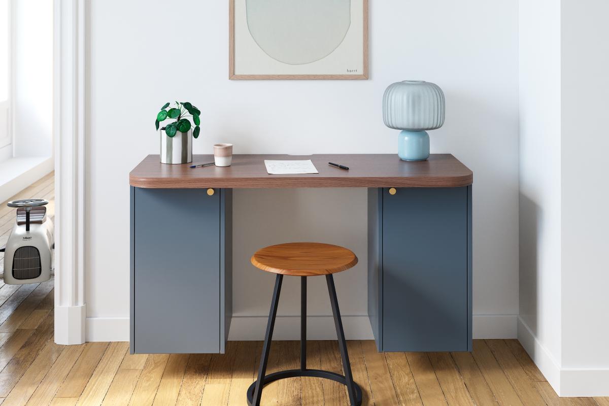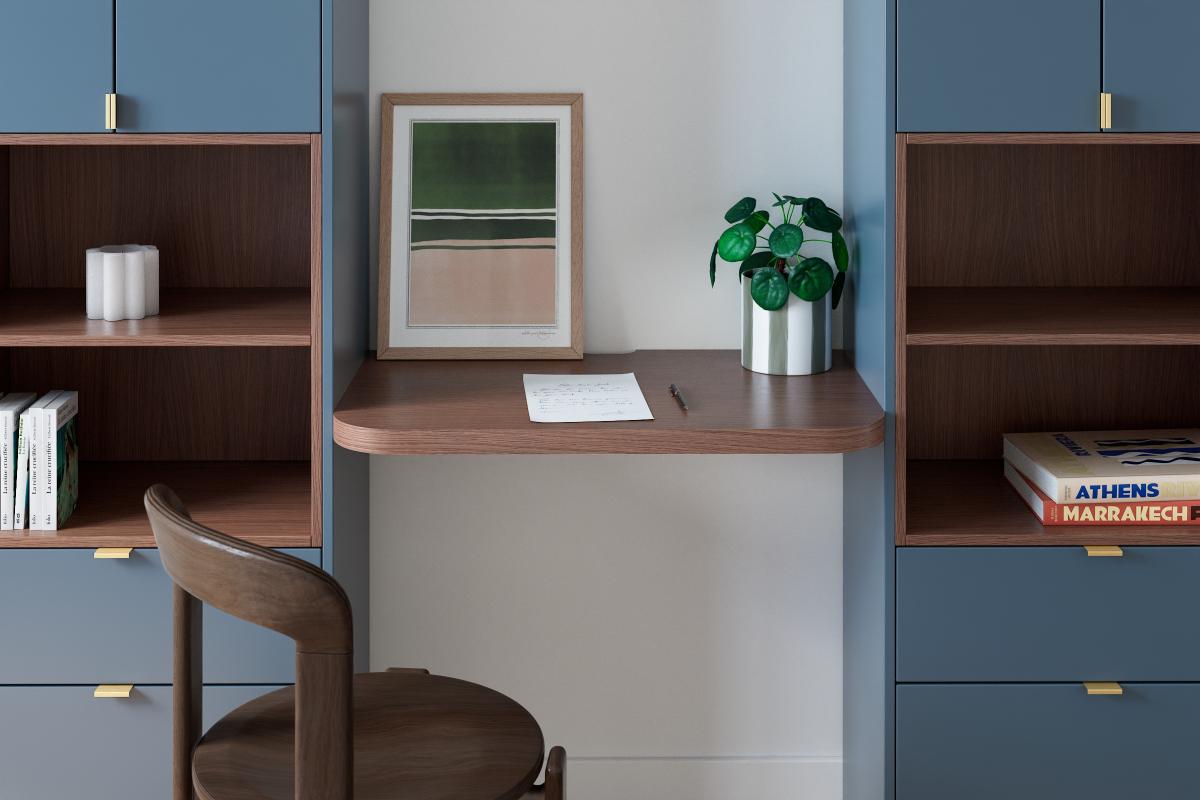 Curved Design Schreibtischplatte, Wallnuss Furnier. Zur Wandmontage oder zur Installation auf einem Unterschrank.