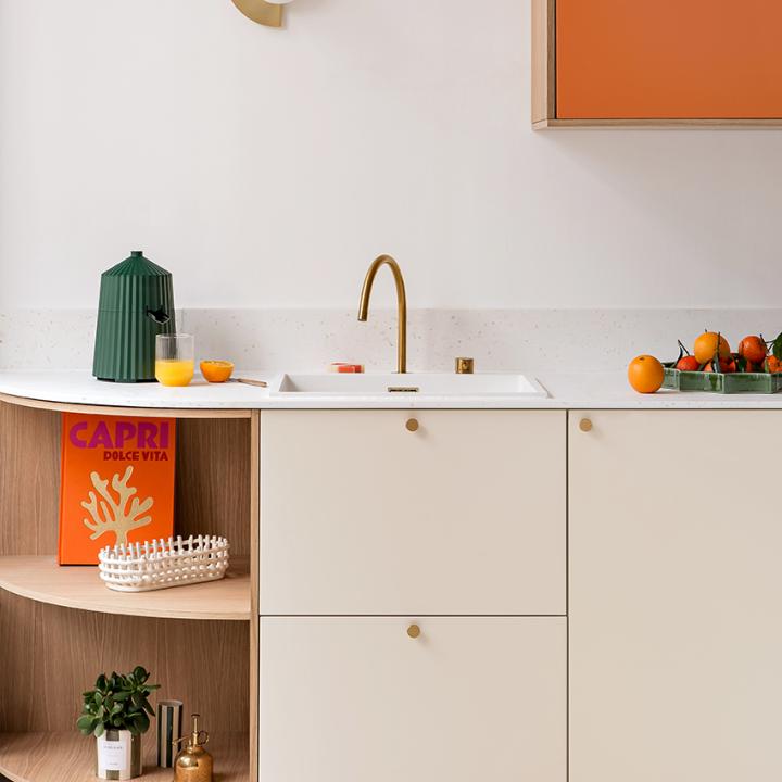 Solid brass mixer tap, perfectly matched to our splashback and handles.