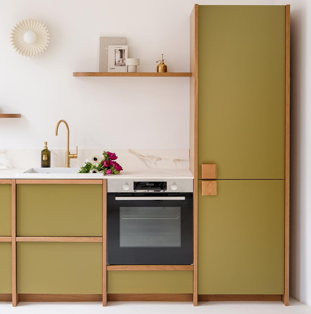 Notre Design Lisse correspond à une façade plane. ll est disponible dans plus de 30 couleurs de laque mate et 3 bois.