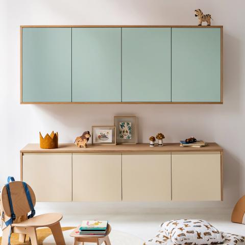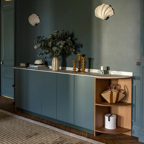Un meuble composé de caissons ouverts et fermés pour multiplier les rangements sans perdre en style.